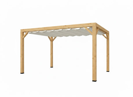Reguliere prijs Van €1.80000Eenheid prijs /Niet beschikbaarPergola van Eiken hout 14 x 14 cm kopmaat inclusief WATERDOORLATEND Harmonica schaduwdoek